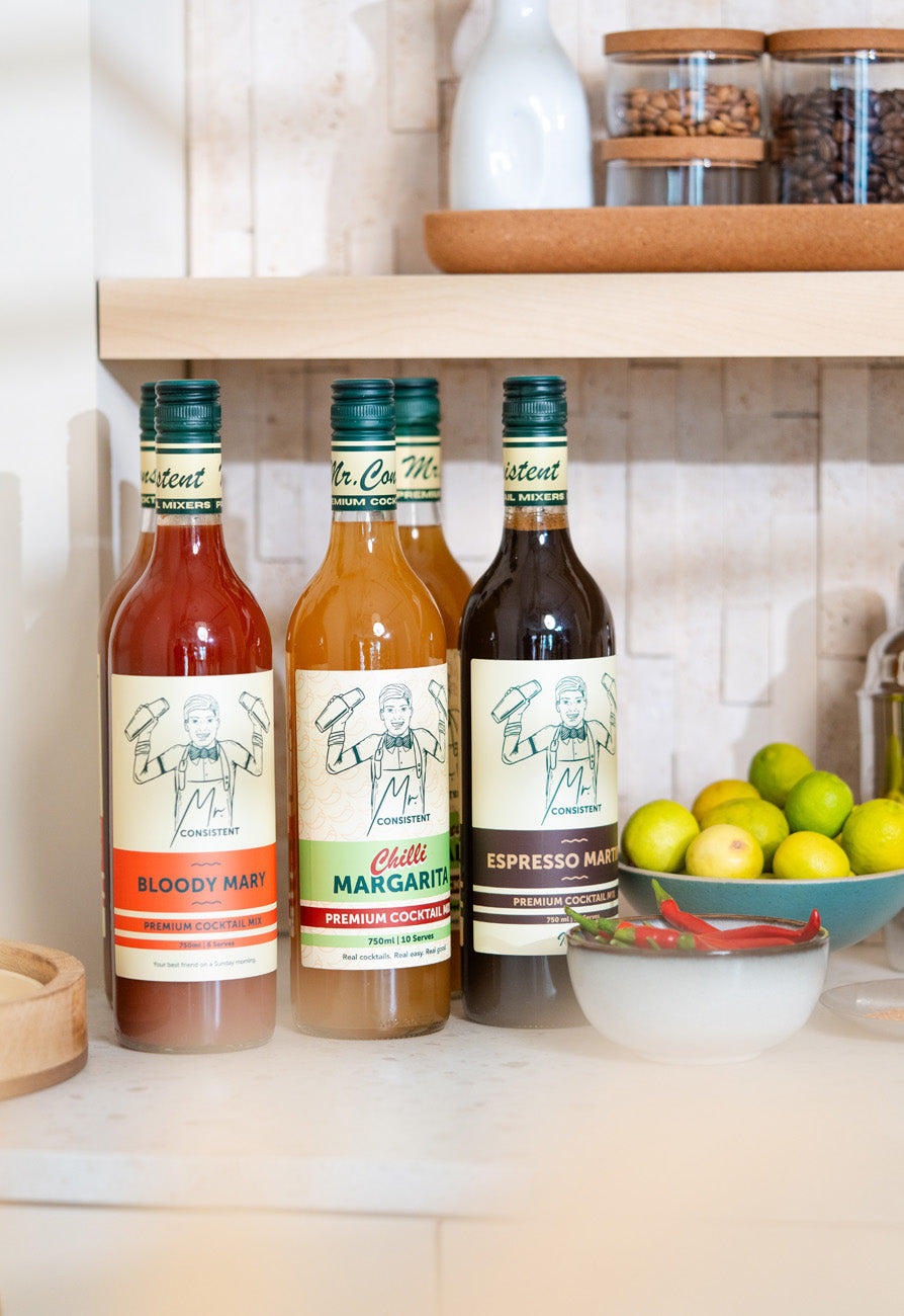 Elevate your home bar or surprise someone special with the Mr. Consistent Bold & Classic Gift Pack – a premium selection of our most iconic cocktail mixers, crafted to impress. Whether you're into bold coffee flavours, timeless citrus blends, or savoury spice – this pack has something for every mood.